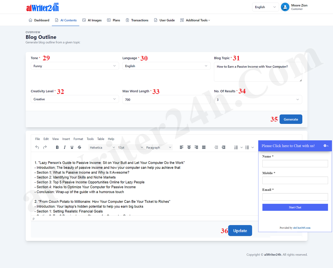 This article helps you to create a seo standard article via aiWriter24h.com automatically. You should follow some steps bellow to do it: