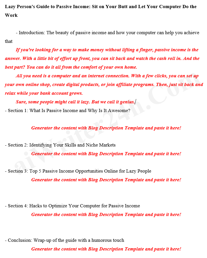 => When you finish to input all things for this form, you click on Generate (45) button to create the content for this part of the article's outline. Then you copy it and paste it in your word file.